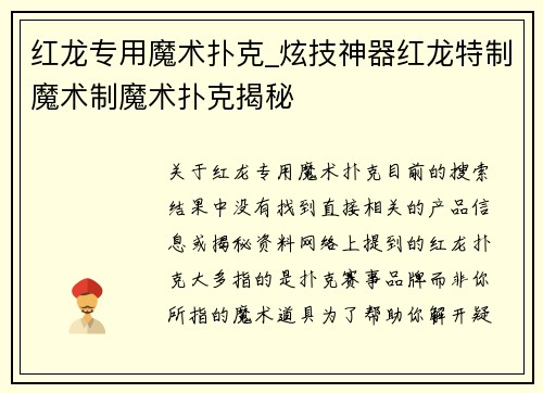 根据目前的搜索结果,要找到一个统一的“红龙扑克Poker官网”存在一些困难,因为出现了多个相关联的平台和名称。为了帮助你清晰地进行判断,我将找到的信息整理如下。 关于“红龙扑克”的可能指向 综合来看...